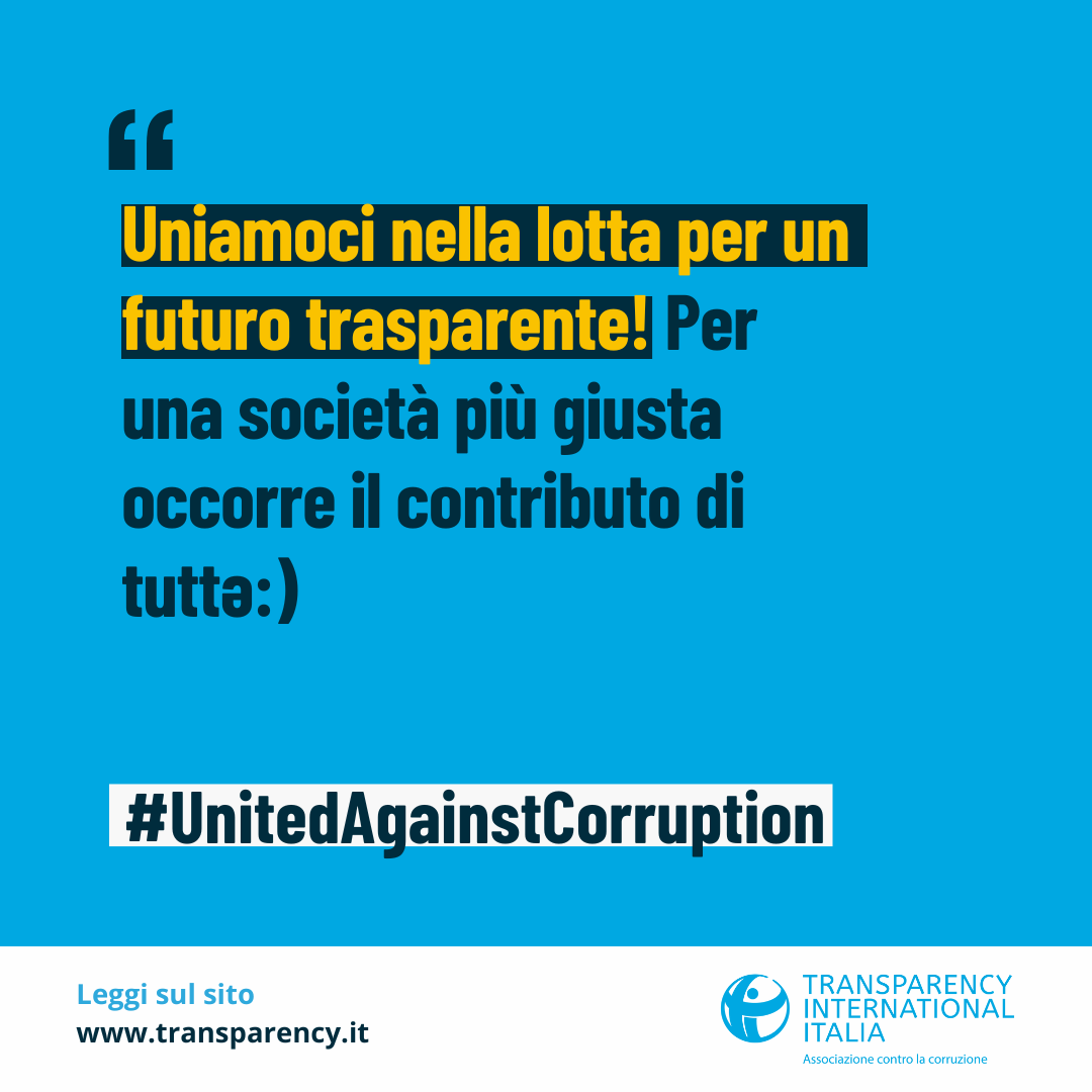 Per fare ciò sono di primaria importanza la scuola e l’istruzione che, nell’insegnare i valori della trasparenza, della responsabilità e dell'integrità sono i primi attivatori di buone pratiche anticorruzione. Un futuro libero dalla corruzione è possibile e per costruirlo dobbiamo #AgireOra #UnitedAgainstCorruption