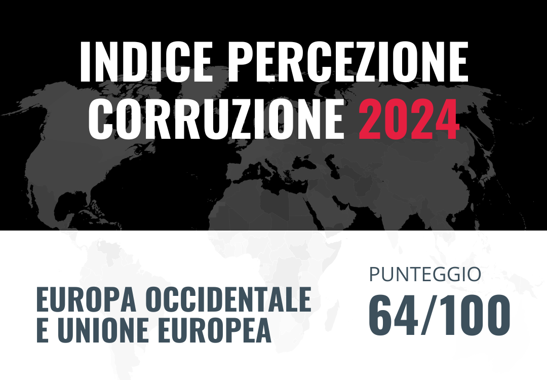 La media regionale dell'Europa occidentale e dell'Unione Europea nell'Indice di Percezione della Corruzione è scesa per il secondo anno consecutivo a 64 su 100. Le principali economie come la Germania (punteggio CPI: 75) e la Francia (67) sono in calo, e anche i paesi nordici tradizionalmente forti come la Norvegia (81) e la Svezia (80) hanno registrato i punteggi più bassi di sempre.
