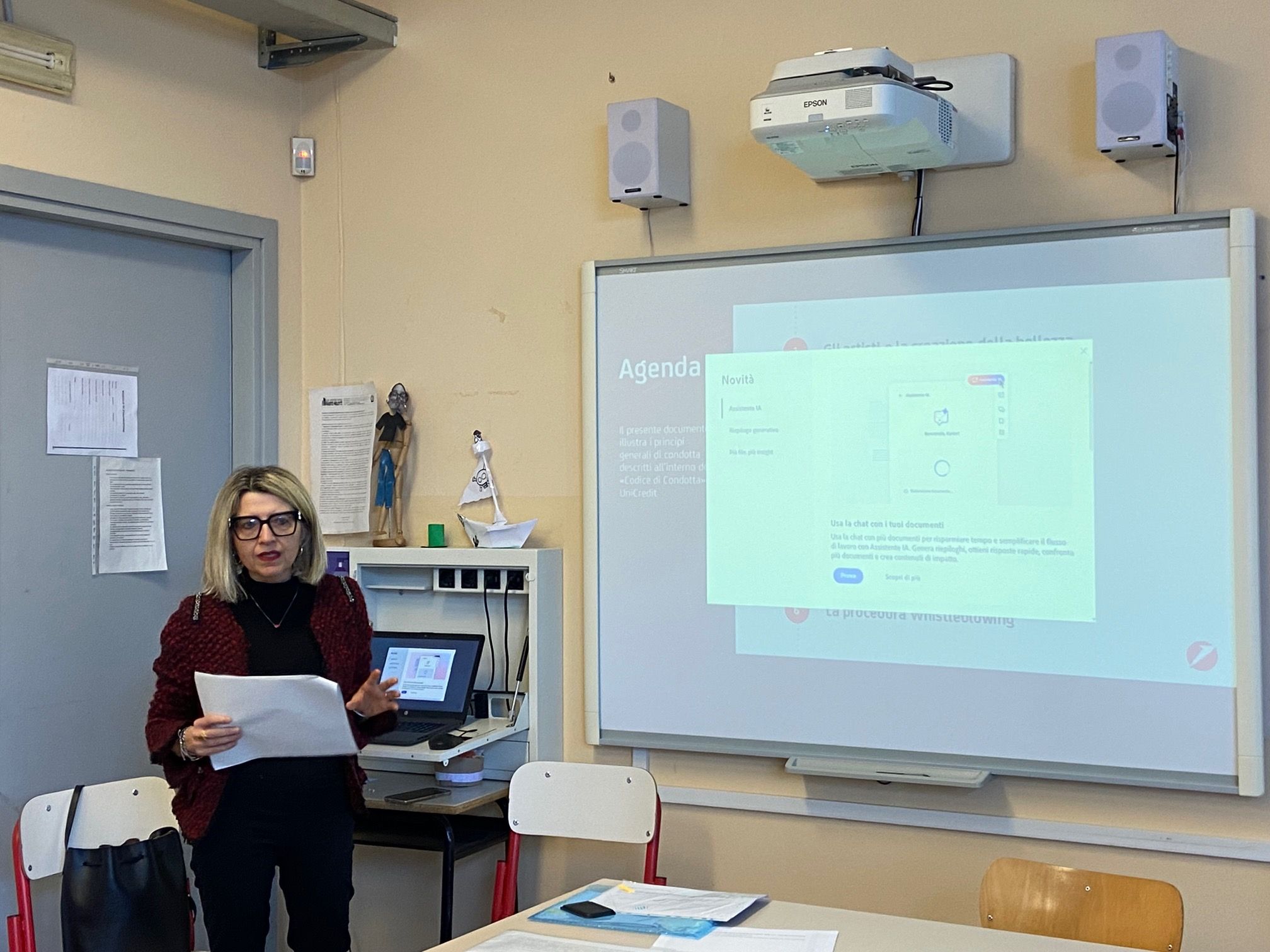 I primi ad arrivare al traguardo dell'edizione 2025, del percorso di educazione partecipata Ci Conviene, sono stati anche quest'anno i ragazzi della 4L del Liceo Melotti di Lomazzo, in provincia di Como, con il supporto della professoressa Anna Brugnoli. I ragazzi della 4L, fin dal primo istante partecipi e sensibili ai temi dell’integrità e della sostenibilità, hanno affrontato gli incontri di semina e raccolta e il 18 febbraio hanno presentato la prima stesura del loro Codice etico partecipato, un lavoro sul quale si sono confrontati con Diva Ricevuto di Asvis e Giovanni Colombo di Transperency International Italia, insieme alla rappresentanza delle integrity actor di Unicredit - Elisabetta Sormani, esperta di Whistleblowing - e della Regione Lombardia - Enrico Gasparini, RPCT.
