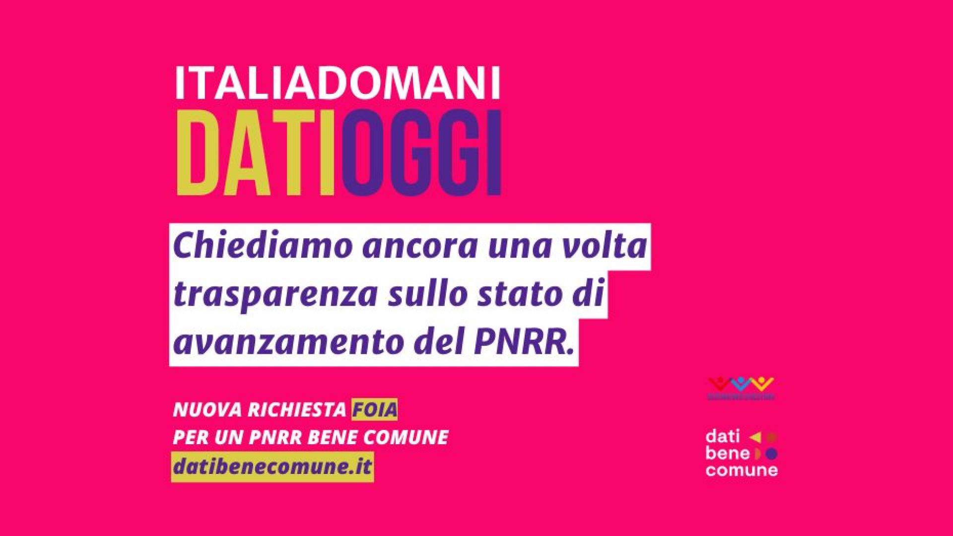 Fin dall’avvio del Piano nazionale di ripresa e resilienza, con le oltre 300 organizzazioni riunite nella campagna “Dati Bene Comune” e con l’Osservatorio Civico PNRR, chiediamo maggiore trasparenza e accesso pubblico alle informazioni. A oggi, nonostante i passi in avanti a cui abbiamo assistito negli ultimi mesi, non è ancora possibile conoscere nel dettaglio il livello di spesa già sostenuta per ogni progetto finanziato con i fondi del PNRR.