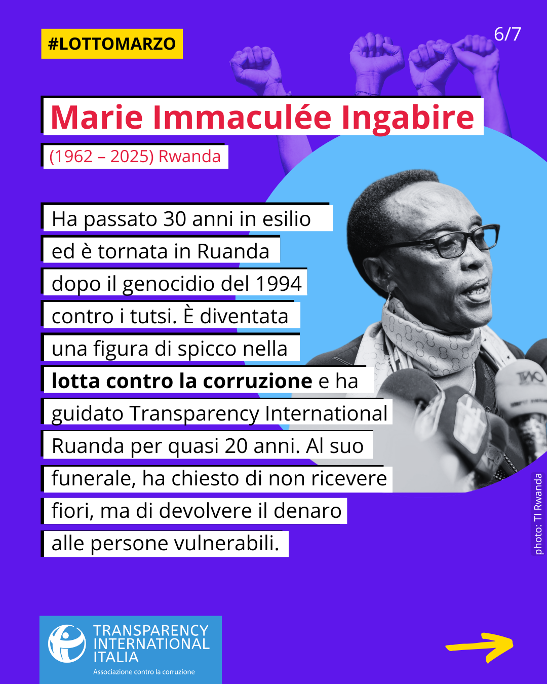 Nata in Burundi, ha passato 30 anni in esilio ed è tornata in Ruanda dopo il genocidio del 1994 contro i tutsi. È diventata una figura di spicco nella lotta contro la corruzione e ha guidato Transparency International Ruanda per quasi 20 anni. Al suo funerale, ha chiesto di non ricevere fiori, ma di devolvere il denaro alle persone vulnerabili.