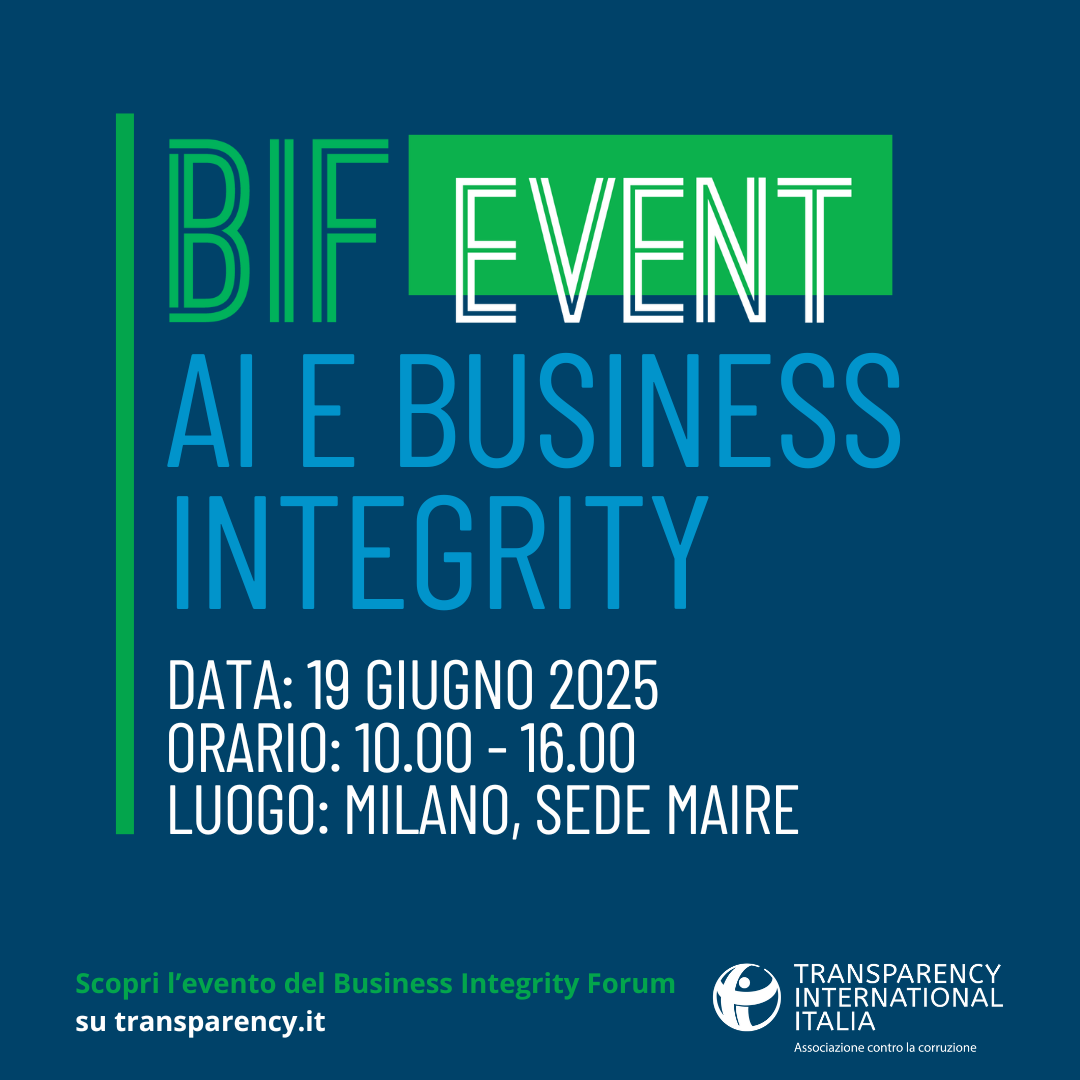 Giovedì 19 giugno a Milano, nella Sede Maire e in diretta streaming, si è svolto il BIF Event 2025 dedicato a intelligenza artificiale e integrità aziendale, promosso dal Business Integrity Forum di Transparency International Italia.