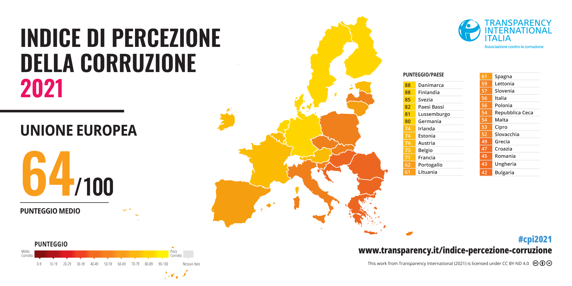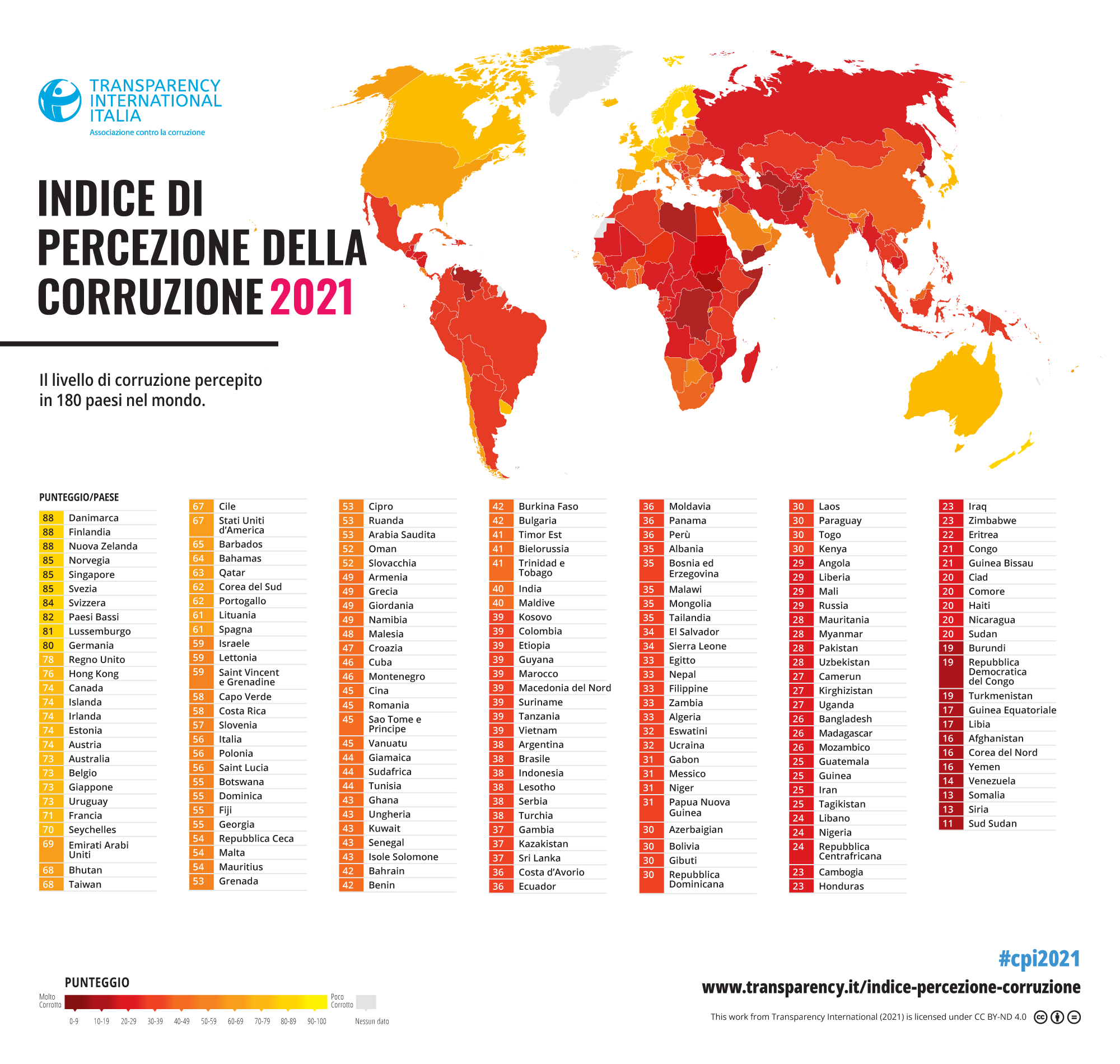 Nell’edizione 2021 dell’Indice di Percezione della Corruzione (CPI)